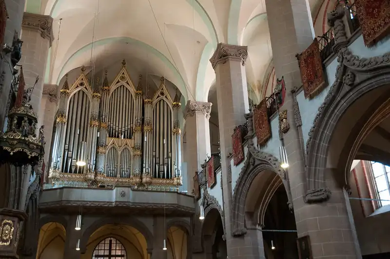 - 1836-1839 organ with neo-gothic asps and gold ornamentation, heavily influenced by baroque plasticity.
